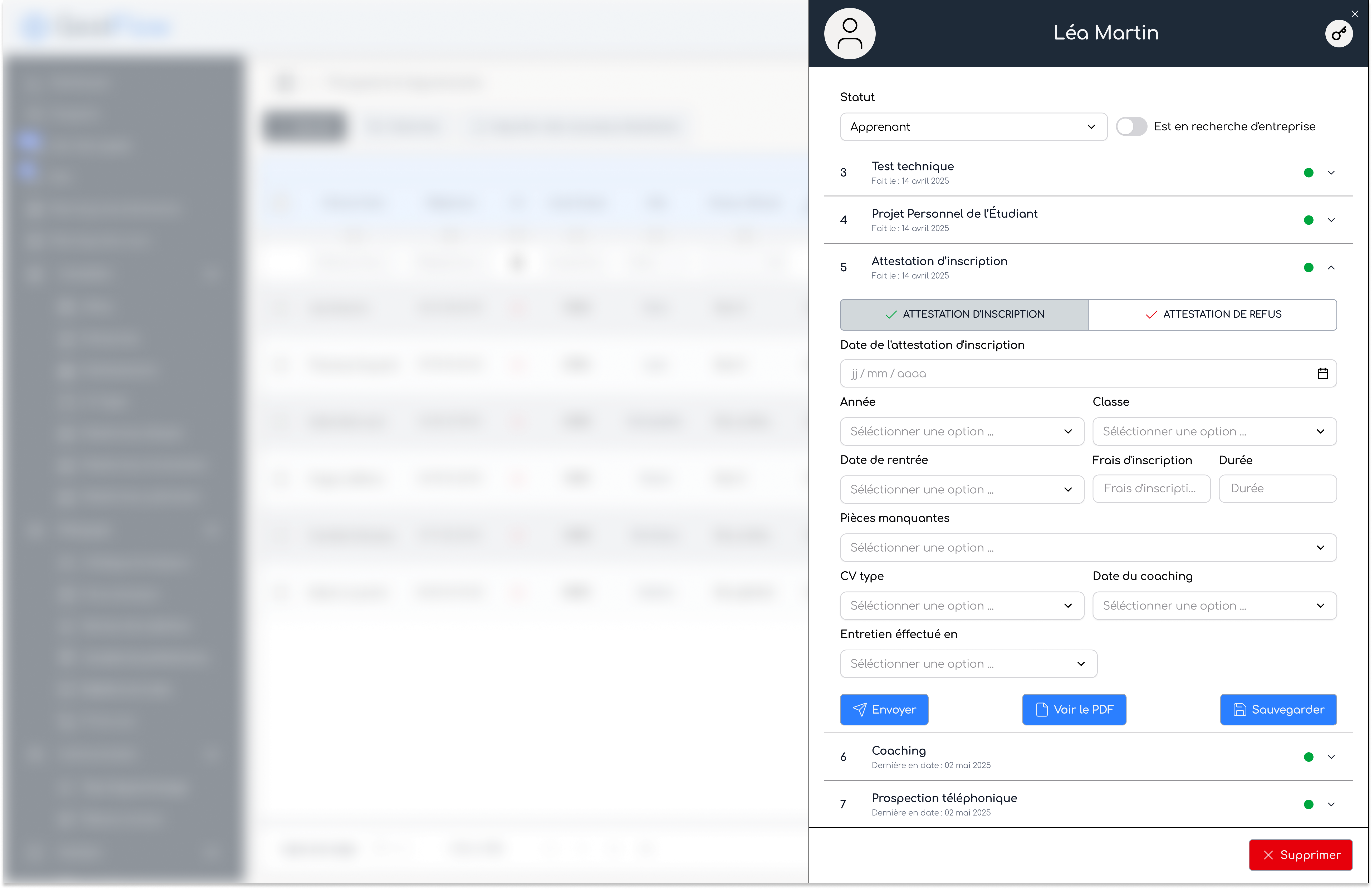 Centralisez inscriptions, attestations, plannings et dossiers apprenants. Libérez-vous des lourdeurs administratives pour gagner du temps et vous concentrer sur l'essentiel : la réussite de vos apprenants.
